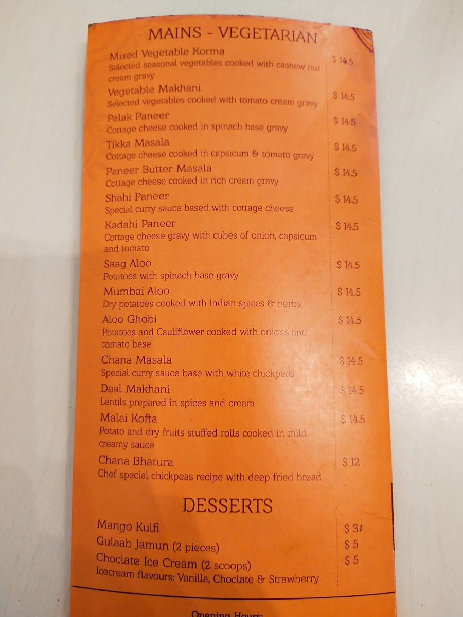 Mango Lassi, priced at NZ$5.00, rounds off your meal perfectly, offering a refreshing dessert that complements the robust flavors of your main dishes. With rave reviews praising the service and authenticity of the food, Copper Chimney is a must-visit for anyone seeking delectable Indian meals in a relaxed takeaway setting.